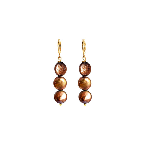 Brown freshwater pearl huggie earrings | by Ifemi Jewels